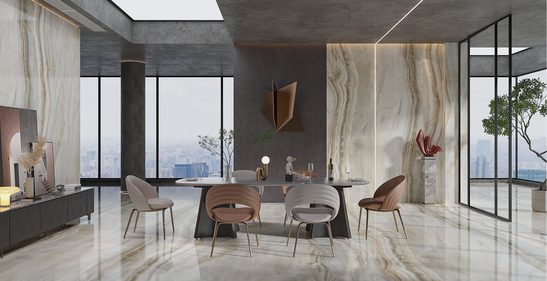 依諾瓷磚連紋大板產(chǎn)品及效果圖展示。連續(xù)拼接的超大畫面設(shè)計(jì),拼出你想要的任意規(guī)格。
